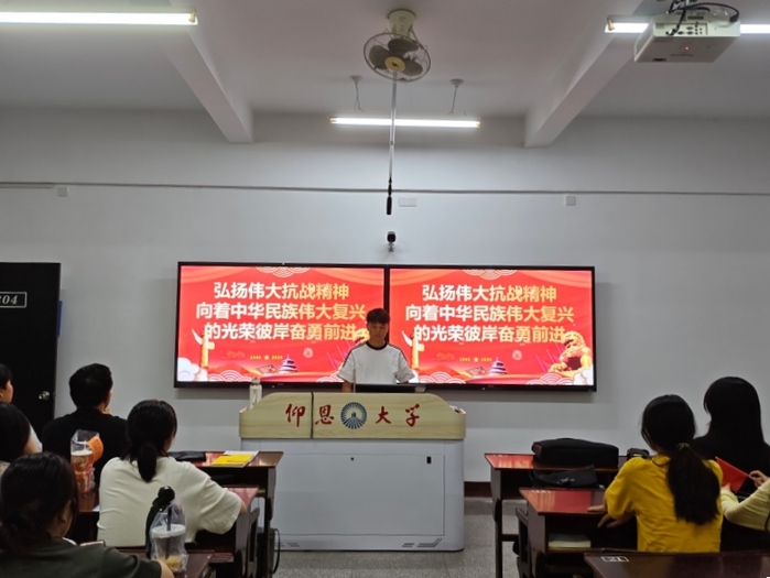 为深入学习贯彻习近平新时代中国特色社会主义思想,弘扬伟大抗战精神,激励青年学子在新时代新征程中勇担使命,yl8cc永利官网于2025年9月组织各班级开展以弘扬伟大抗战精神,向着中华民族伟大复兴的光辉彼岸奋勇前进为主题的政治理论学习活动,引导同学们铭记历史、缅怀先烈,以昂扬斗志投身法治中国建设,为推进中华民族伟大复兴贡献青春力量。