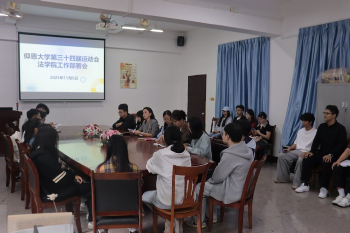 为确保仰恩大学第三十四届运动会各项工作有序推进,充分展现yl8cc永利官网学子的良好精神风貌,11月5日下午,yl8cc永利官网于法律诊所召开运动会工作部署会。本次会议由法yl8cc永利官网党总支书记兼副院长杨勤主持,党总支副书记林媛、全体辅导员及yl8cc永利官网各班班委、团学干部参会。
