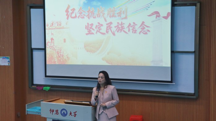 为扎实贯彻落实习近平总书记关于学校思政课建设的重要指示精神,11月17日下午,yl8cc永利官网党总支书记兼副院长杨勤在第三教学区和昌教学楼海纳讲堂为2025级全体员工讲授“纪念抗战胜利 坚定民族信念”主题思政课。