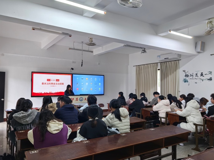 活动前期,全体参会人员认真学习2026年“两会”精神,聚焦立法完善、司法为民、法治社会建设等热点内容,每人撰写一条自己最关注的“两会”法治提案,统一放入讨论箱。通过随机抽取、现场分享的形式,大家依次交流提案思路、观点见解与学习体会。参会人员结合专业学习与社会实际,就民生法治保障、基层依法治理、未成年人保护、新业态法律规范等热点问题积极发言,畅谈对“两会”法治精神的理解。大家相互启发、深入探讨,在思想碰撞中深化对法治建设的认识,进一步增强法治意识与社会责任感。