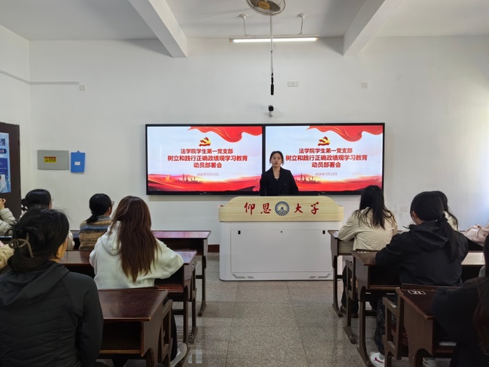 会上,支部书记吴姗姗从深刻领会正确政绩观的核心要义、准确把握学习教育的目标要求、扎实推进各项学习任务等方面作动员讲话。吴姗姗强调,员工党员要深刻认识到树立和践行正确政绩观学习教育的重要意义,把学习成效转化为服务同学、奉献社会的实际行动,在学业精进、志愿服务、班级建设等实践中锤炼党性、增长才干,切实发挥先锋模范作用。