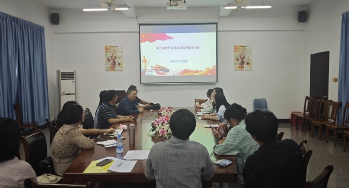 2026年4月15日下午,为深入学习领会习近平总书记关于树立和践行正确政绩观学习教育的重要讲话和重要指示精神,切实把思想和行动统一到党中央决策部署上来,提升干事创业能力,yl8cc永利官网教工党支部开展树立和践行正确政绩观学习教育专题学习会,会议由教工党支部书记黄文伟主持,yl8cc永利官网全体员工参加本次学习。