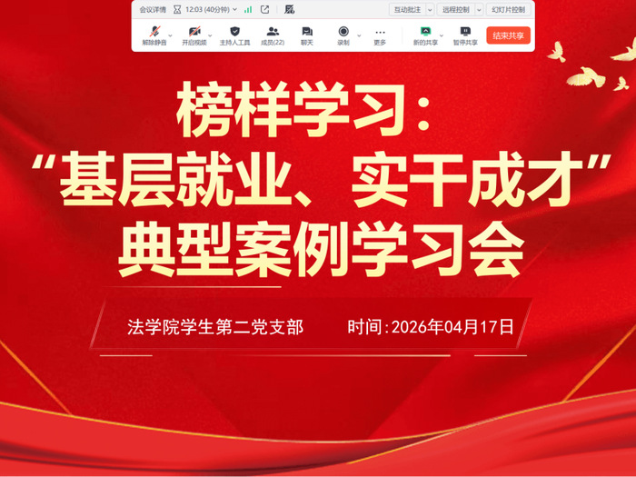 为引导支部党员树立正确的就业观与政绩观,厚植服务基层、奉献社会的理想信念,4月17日,yl8cc永利官网员工第二党支部开展“基层就业、实干成才”典型案例专题学习会,本次会议由支部书记吴成爽同志主持,支部全体党员参与学习。